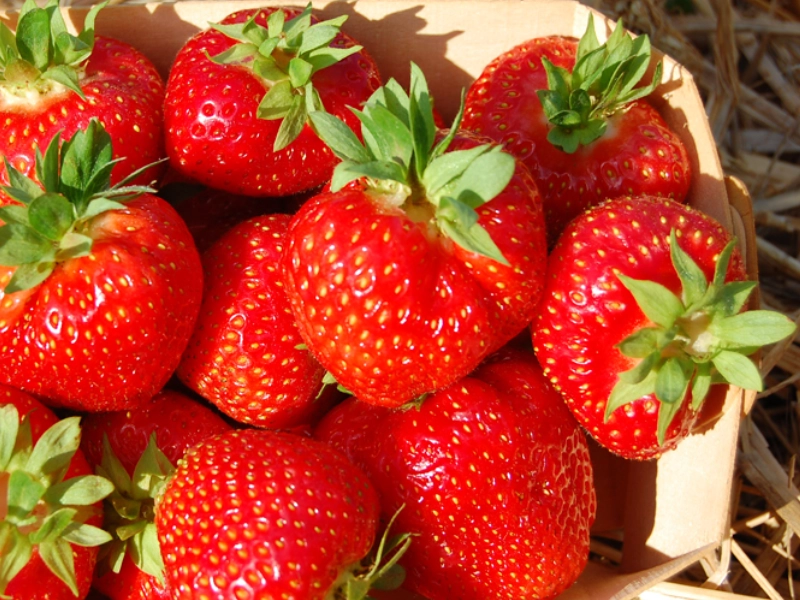 Owoce: średniej wielkości i duże, szerokostożkowate do stożkowatych. Ich skórka jest jasnoczerwona z silnym połyskiem, na wierzchołku pierwszych owoców często jaśniejsza, a nawet zielona. Miąższ jest jasnoróżowy do jasnoczerwonego, dość jednolity na przekroju, soczysty, bardzo smaczny o poziomkowym aromacie. Owoce są bardzo jędrne, dobrze znoszą transport na dalekie odległości oraz dłuższe niż zazwyczaj przechowanie w warunkach pokojowych. Kielich jest średniej wielkości, o działkach częściowo przylegających do owocu, lekko odchodzi od truskawki. Owoce 'Elsanty’ tylko w niewielkim stopniu porażane są przez szarą pleśń.